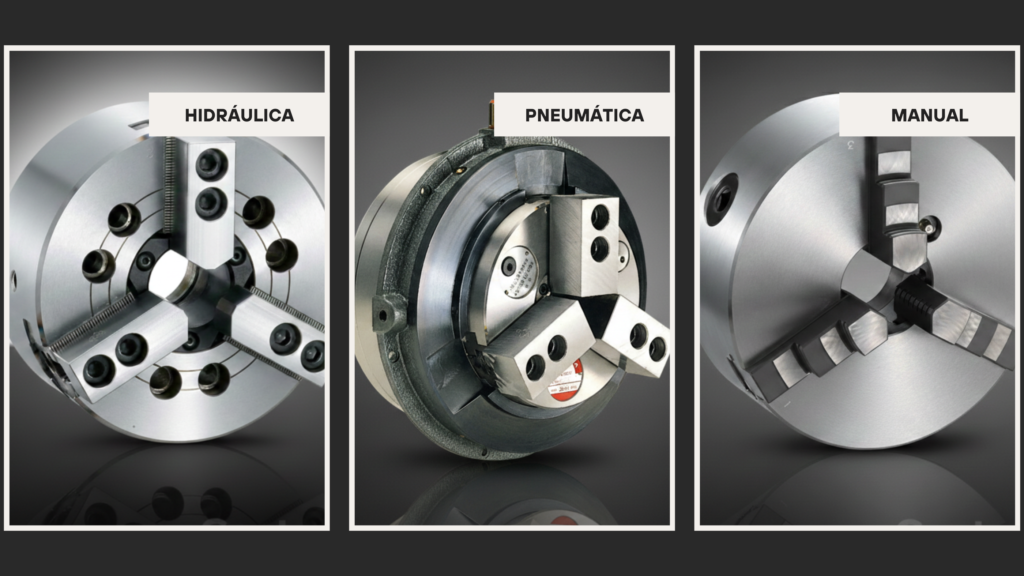 Dentro desse universo, existem diferentes formas de acionamento, responsáveis por fazer com que as castanhas avancem ou recuem para fixar as peças. Por isso, entender os tipos de acionamento disponíveis é essencial para escolher a solução mais adequada para cada aplicação.